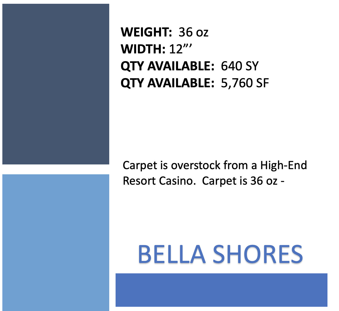 Retail $26.99 sq yd – Liquidation Price JUST $10.99 sq yd